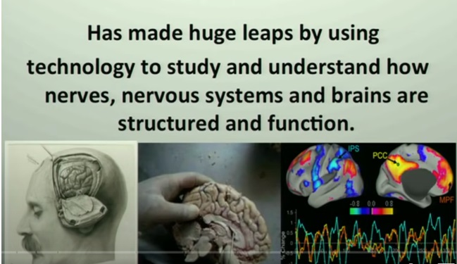 “… stavlja nam mozak na dohvat ruke.. ono što želite vidjeti jest da su znanosti o mozgu zapravo stvorile ogromnu količinu zamaha i potencijala. A to je zamah da budemo u mogućnosti procijeniti, pristupiti i utjecati... ono što stvarno čini, stvara priliku da utječemo na način na koji ljudi razmišljaju, osjećaju se i ponašaju na različitim razinama. A te se razine ne protežu samo unutar pojedinačnog organizma, drugim riječima mogu utjecati na misli, emocije, ponašanje, u rasponu od sinaptičkih do naših društvenih interakcija, pojedinačno, već nam također omogućuju da izvršiti određene razine intelektualne procjene, stjecanja znanja i kontrole međuljudskih odnosa na pojedinca kako bi se povezalo u skupinu u zajednicu na lokalnoj, regionalnoj pa čak i globalnoj razini…”