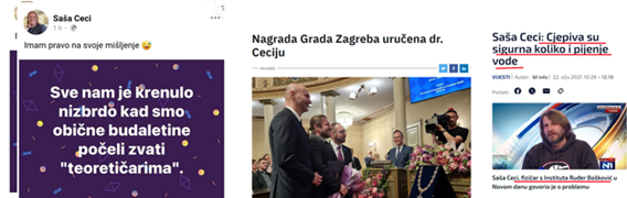 A Ceci? Ceci je bježao od javne debate, odbijao je. Nije jedini. No zato je bez imalo srama na svom statusu napisao 1. 10. 2023., uoči održavanja 1. Znanstvenog i stručnog simpozija ZNANOST ILI DOGMA u Zagrebu, kako „svi oni koji dođu na taj skup imaju IQ dječje cipelice“. Zaista znanstvenik, salonac!