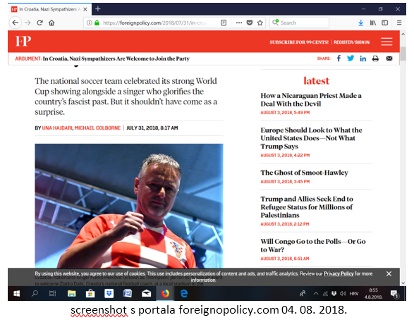 A onda 01. kolovoza 2018., kao po dogovoru, u američkom Foreign Policy osvane tekst pisan od, kako za sebe kaže, balkanske novinarke Une Hajdari: "U Hrvatskoj su simpatizeri nacista dobrodošli na zabavu". A u tekstu koristi izjave Žarka Puhovskog i Hrvoja Klasića.