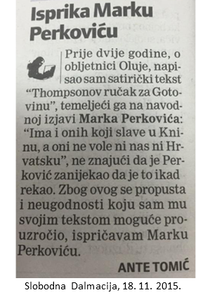 Nakon pokrenutog kaznenog postupka uslijedila je isprika i u Slobodnoj Dalmaciji na svega par centimetara prostora, skriveno od pogleda.