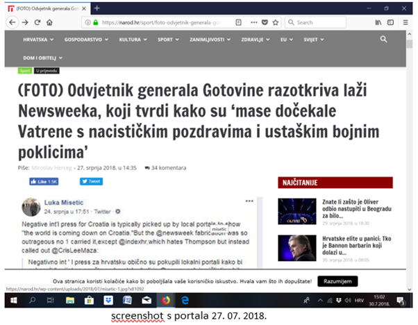 Laž je objavio Newsweek, točnije njihova novinarka Cristina Maza, s kojom je odvjetnik Luka Mišetić vodio prijepisku na njezinom Twitter profilu, kao i s prijavom o laži o toj informaciji s redakcijom Newseeka. Što je, u konačnici, rezultiralo isprikom zbog objavljenog teksta o dočeku