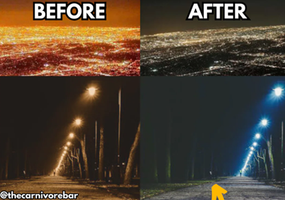 Usporedna slika New Yorka prije i poslije široko rasprostranjene primjene LED ulične rasvjete daje sumornu sliku. Dok su tople žarulje sa žarnom niti nekada gradu davale ugodan, privlačan sjaj, današnje LED osvijetljene ulice izgledaju sterilno i negostoljubivo. Osim estetike, oštar plavo-bijeli sjaj doprinosi svjetlosnom zagađenju, ometa san stanovnika i čini noćna okruženja grubima i umjetnima.