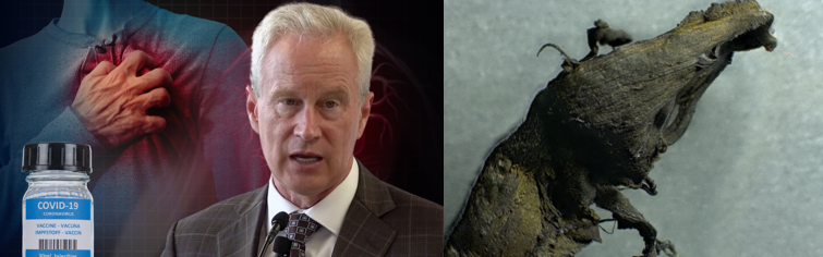 Dr. Peter McCullough: "Jučer sam vidio pacijente s ogromnim krvnim ugrušcima u nogama nakon cjepiva." Rekao je da je ubrizgavanje ljudima genetskog koda za smrtonosni šiljasti protein "najopasniji prijedlog koji su naše vladine agencije mogle iznijeti našoj zemlji." Dr. McCullough je primijetio: "Spike protein, sada u 3400 recenziranih radova čiji broj raste, dokazano je da uzrokuje oštećenje srca i miokarditis ... Spike protein se fizički nalazi u krvnim ugrušcima, najvećim krvnim ugrušcima koje smo ikada vidjeli u kliničkoj medicini. " Spomenuo je da je prije COVID-19 vidio samo dva slučaja miokarditisa tijekom cijele svoje karijere. "Sada svakodnevno viđam miokarditis", žalio se dr. McCullough. "Cjepiva protiv Covid-19 treba ukloniti s tržišta. Nisu sigurni za ljudsku upotrebu", svjedoči dr. McCullough. 53% odraslih Amerikanaca sada misli da su "cjepiva" protiv COVID-19 uzrokovala značajan broj neobjašnjivih smrti. Dr. McCullough otkriva uznemirujuće detalje o krvnim ugrušcima nakon cjepiva i miokarditisu
