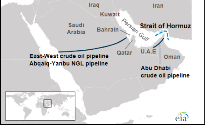 Energetski analitičari procjenjuju da otprilike 20 milijuna barela dnevno obično prolazi kroz Hormoški tjesnac. Naftovodi Petroline i ADCOP zajedno mogu nadoknaditi samo dio te količine.
