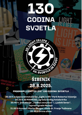 Vidimo se u četvrtak u Šibeniku, gradu koji već 130 godina živi u svjetlosti i koji je upravo zbog tog povijesnog trenutka postao simbol napretka i inovacija. Manifestacija „Light is Life“ počinje u 20:20 sati.