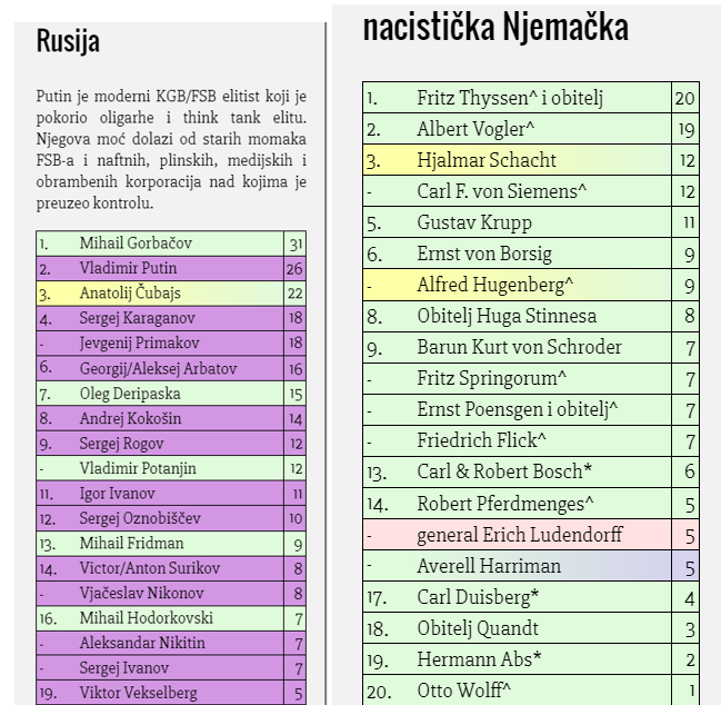 Na ovoj poveznici možete pronaći imena istaknutih pojedinaca rangiranih prema broju nevladinih organizacija - i niza ključnih korporacija - s kojima su (barem) povijesno sudjelovali. Sve u svemu, čini se da je ovo vrlo precizan "indeks utjecaja" kada je u pitanju, jednom zauvijek, i na prilično znanstveni način, identificiranje "moćnika". Fokus je na Zapadu, uključujući Izrael, no moguće je dobro naslutiti i situaciju u Rusiji.