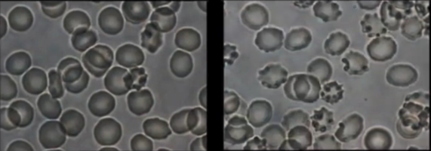 Nanočestice na bazi grafen oksida koje se koriste u Covid injekcijama dizajnirane su za prodiranje u membranu stanica kako bi mRNA ušla u njih. Ovo stalno prodiranje stijenke stanične membrane moglo bi biti ono što uzrokuje ove deformacije membrane. Prema A Laboratory Guide to Clinical Hematology at the Open Education of Alberta: