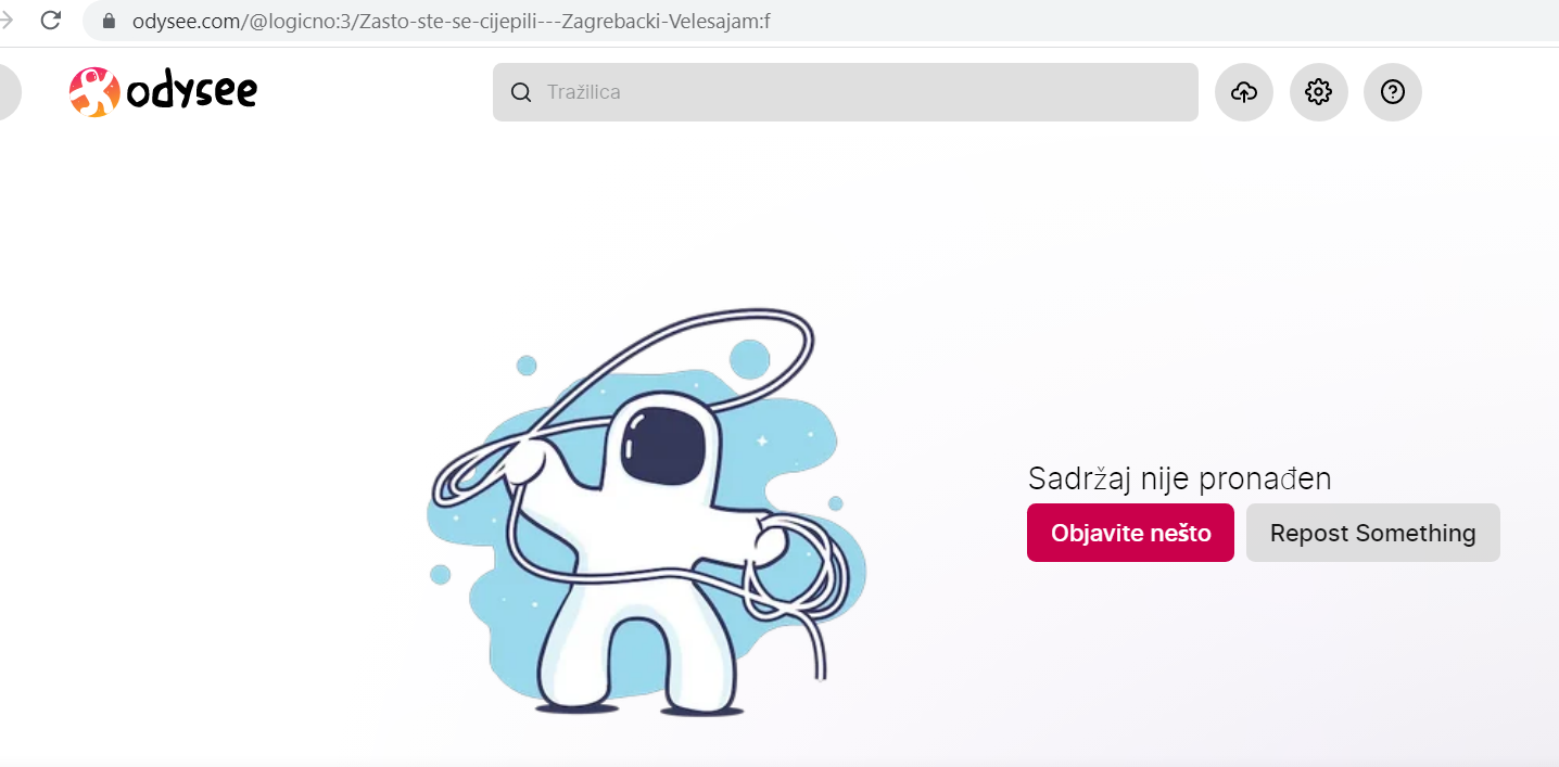 Evo dokaz kako je i ovaj snimak s Velesajma obrisan od strane tog portala. Čudi me, rado se pozivaju na autorska prava jer znaju da je to moje područje i osobnog interesa, a sve moje su jednostavno rečeno uništili. A odgovornost za štetu?