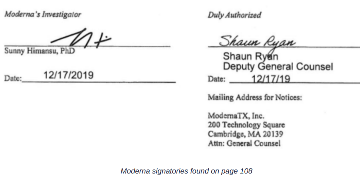 Započnimo s pregledom povjerljivog sporazuma koji dokazuje da je Moderna imala kandidata za cjepivo protiv koronavirusa najmanje devetnaest dana prije navodne pojave SARS-CoV-2 u Wuhanu u Kini.