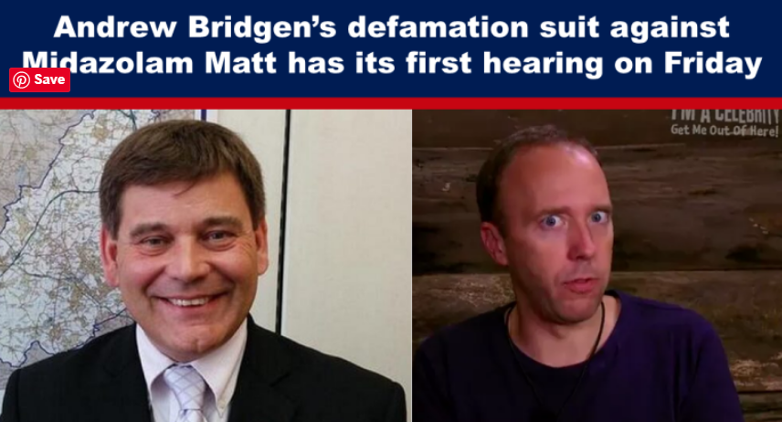 U svibnju prošle godine, Andrew Bridgen, član parlamenta za sjeverozapadni Leicestershire, objavio je da tuži Matta Hancocka za klevetu. Jučer je objavio na Twitteru da će njegov pravni zahtjev protiv Matta Hancocka imati prvo uskoro javno saslušanje. Andrew Bridgen’s defamation suit against Midazolam Matt has its first hearing on Friday