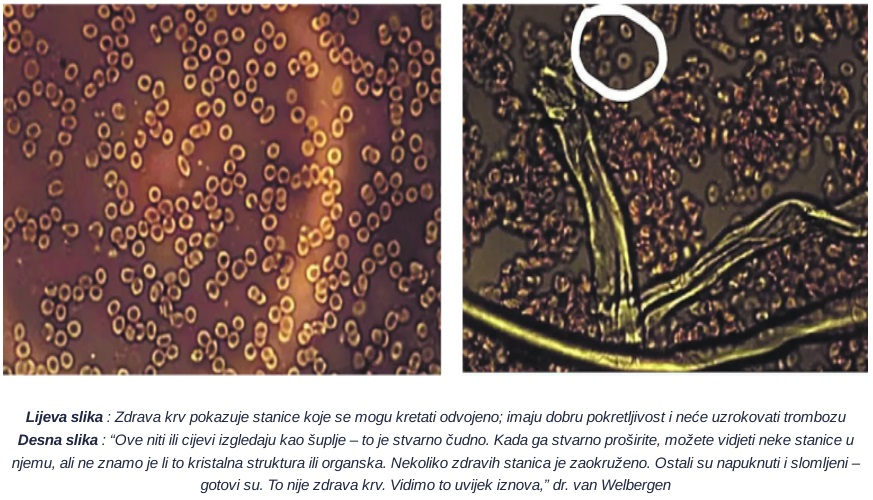 Studija objavljena u časopisu ACD Nano 2016. posebno je zabrinjavajuća kada pogledamo nalaze studije koju je proveo dr. Philippe van Welbergen o mRNA Covid-19 cjepivima u kojoj je zaključio da se Graphene Oxide prenosi s COVID-a cijepljenih necijepljenima, uništavajući crvena krvna zrnca i uzrokujući čudne krvne ugruške.